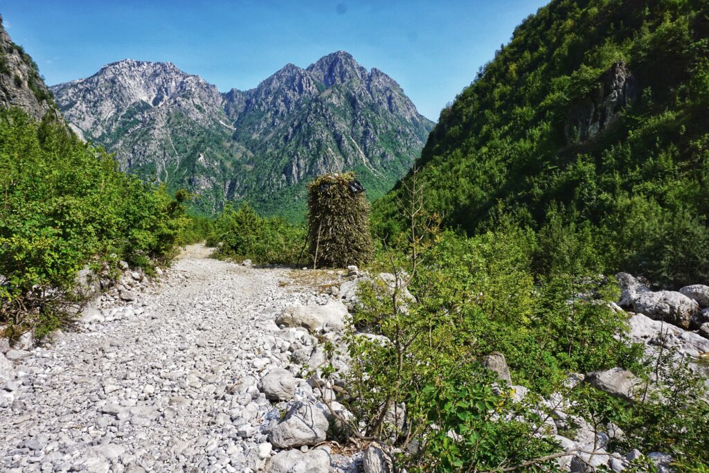 After the dramatic mountain scenery, this flat riverbed feels monotonous. Every rock becomes an obstacle on tired feet. Eventually it transitions to dirt road. You may encounter Bar Kafe Gjoka near the end if it’s open. The final approach sees the dirt become gravel as guesthouses appear along the road. Depending on where yours is located, you may walk another 20-45 minutes along the valley road. Most hikers complete the full journey in 6-8 hours.