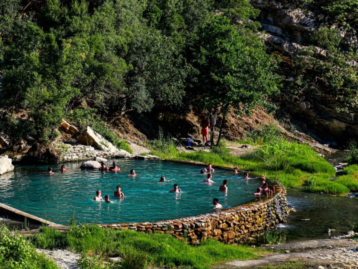 We start the day with a leisurely breakfast at the hotel. For those seeking adventure, an optional white-water rafting experience on the Vjosa River is available in the morning. Guided by professional instructors, you’ll navigate the pristine rapids of Europe’s last wild river. This is a thrilling yet beginner-friendly experience. Lunch is served at a riverside fish restaurant, where we will savor fresh dishes while soaking in the serene views of the Vjosa River. In the afternoon, we visit the Benja Thermal Springs, a natural spa surrounded by mountains and the picturesque Ottoman bridge. The rest of the day is free to relax or independently explore Përmet. Overnight in Përmet, at Hotel Alvero (or similar).